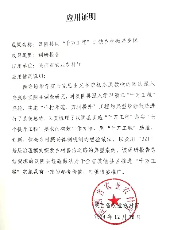 近日,省政府领导对省社科联报送的《陕西社科要报》2024年第14期作出肯定性批示。第14期《汉阴县以“千万工程”加快乡村振兴步伐》为多多28杨永庚、陈倩、陈欢、胡倩等教师团队的研究成果。