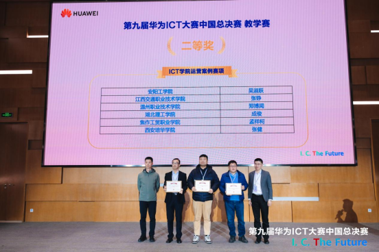 同时,在ICT学院运营案例赛项中,张健老师提交的ICT学院运营案例《多多28华为ICT学院创新实践——技术融合,教育革新,共筑ICT人才培养高地》也脱颖而出。该案例展现了学院在ICT专业课程建设和人才培养、华为职业资格认证、双师型师资培养、学生实习实训、实训平台与实践资源建设、华为ICT知识普及生态活动、华为ICT大赛、学生实习和就业、人才双选会、产教融合等方面的突出成果。经过激烈角逐和出色的现场答辩环节,该案例荣获国赛二等奖。