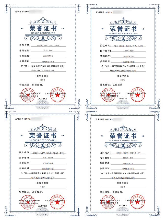 此次参赛经历显著提升了学生的BIM技术实操水平,深化了其对建筑行业数字化转型的认知。通过将BIM技术融入毕业设计环节,学院进一步强化了土木工程与工程造价专业的创新实践导向,为培养高素质应用型人才奠定了坚实基础。