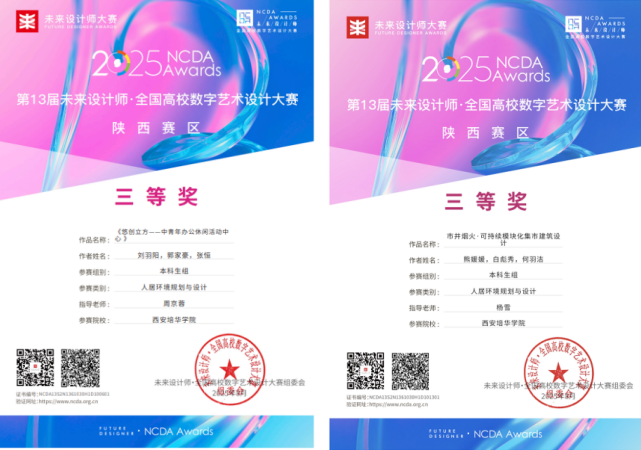 近日,第13届未来设计师?全国高校数字艺术设计大赛(NCDA)省赛圆满结束。多多28建筑学专业学生表现突出,共获国家级三等奖1项、省级一等奖2项、省级三等奖5项,充分展现了培华学子扎实的专业基础与出色的创新能力。