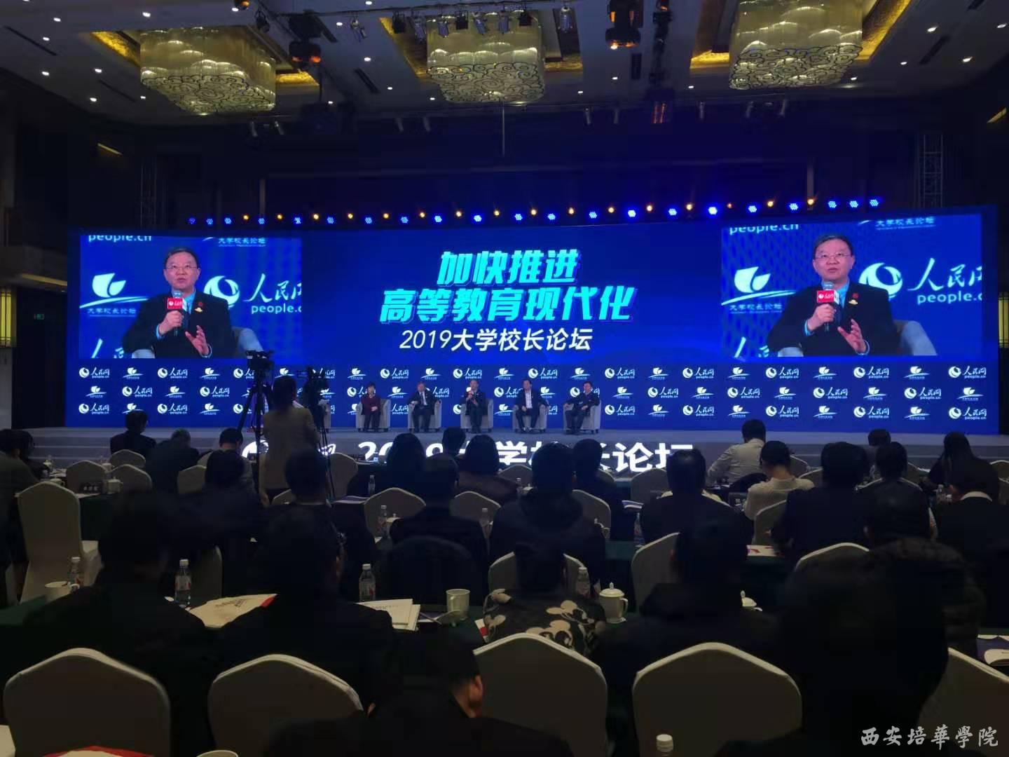 12月13日,在人民日报社、中共陕西省委、陕西省人民政府的指导下,由人民网与中共陕西省委教育工委、陕西省教育厅联合主办的“加快推进高等教育现代化——2019大学校长论坛”在陕西省西安市长安区吉源国际酒店举行。我校李映方校长、科研管理中心王西安主任、校长办公室李健主任代表参会。