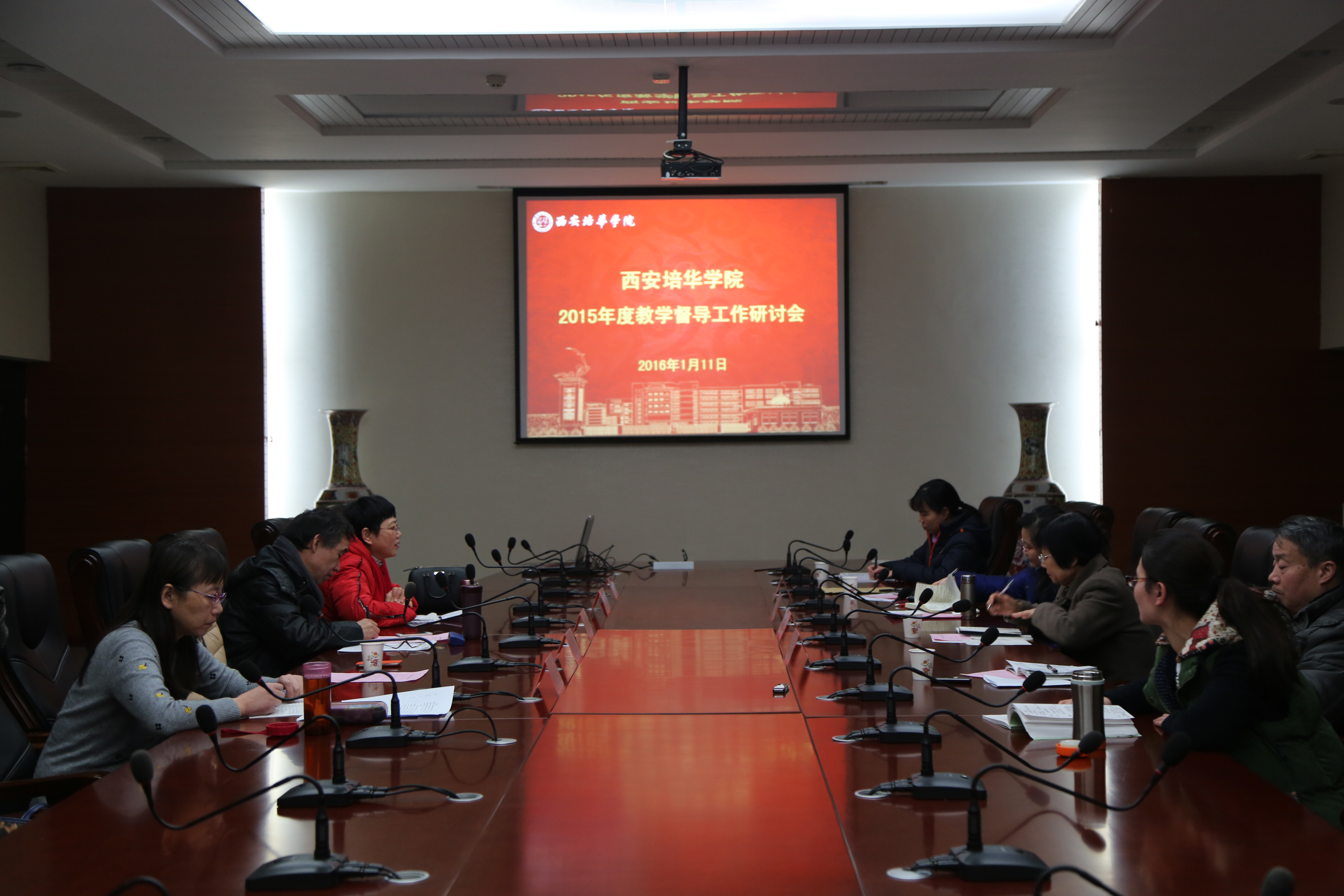 2016年1月11日上午,我校2015年度教学督导工作研讨会在明德楼第一会议室召开,会议由教学督导委员会副主任,教务管理中心主任唐学学主持,多多28党委书记、总督学周庆华教授到会并做了讲话。教学督导委员会副主任、秘书长、教务管理中心副主任贺润坤教授,督导专家李建森、李娇萍、刘平怡、周旭、王蓓等出席了会议。