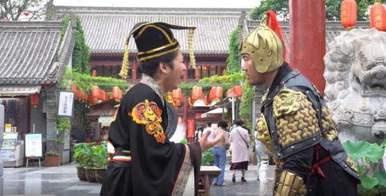 第一场表演的非遗剧目为《与子同袍》,故事讲述了西周末年,周幽王被犬戎人所杀,王室岌岌可危,秦襄公也在犹豫是否派兵协助攻打犬戎。秦人和犬戎世代为仇敌,秦襄公的妹妹缪嬴被迫联姻因此记恨他,大哥世父也被敌人俘虏。最终大哥营救了在犬戎为质的缪嬴的女儿,身负重伤回到秦地阵营。世父临终前兄妹三人打开心结,秦襄公也下定决心攻打犬戎保卫秦人的安危。