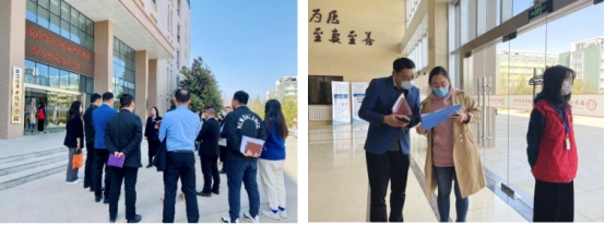下午13:50各学院领导在至善查看学生进教学楼情况