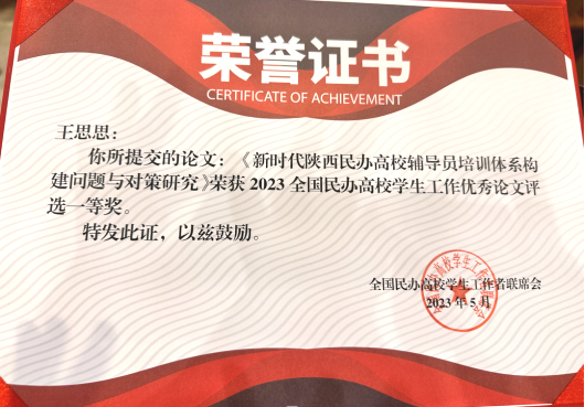 《新时代陕西民办高校辅导员培训体系构建问题与对策研究》论文荣获2023全国民办高校学生工作优秀论文评选一等奖
