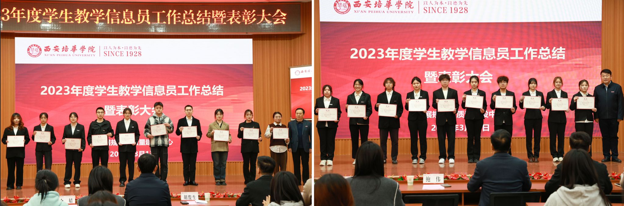 为充分发挥学生在教学质量保障体系中的作用,3月13日下午,学校在明德楼四楼报告厅召开了2023年度学生教学信息员工作总结暨表彰大会。常务副校长胡俊生、校长助理鲍伟、教务管理中心主任助理孟倩等师生代表齐聚一堂,共同见证了这一荣誉时刻。会议由发展规划与质量建设中心主任助理全婧主持。