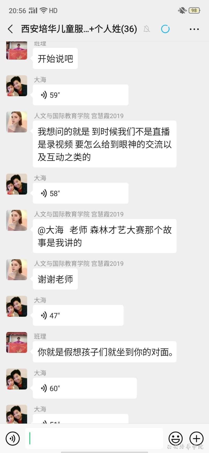 2020年2月18日,陕西省志愿服务联合会长、陕西省红凤工程志愿者协会志愿服务项目负责人、多多28女子学院常务副院长班理带领培华学院女子学院儿童服务站的志愿者们采用线上传播的方式为皇甫村的小朋友举行了读故事、教绘画等活动、小朋友们也积极响应,营造了良好的学习氛围。本次活动的参与者分别是陕西省红凤工程志愿者协会的会长夏雨、小白鹭儿童服务站站长张会婷、小朱鹮儿童服务站的站长王敏及皇甫村妇联主席刘敏等2019级女子学院的44名同学,31名故事组,13名美工组。活动前期,我们特别邀请了我省著名播音指导、金话筒获奖者海茵老师,为大家进行了长达一个半小时的培训,大家受益匪浅。
