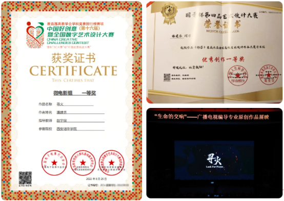 在后期筹备自己的微电影《锦瑟》和《寻火》时,他就试图将当代社会议题、历史文化和情感的理解与表现融入其中,《锦瑟》获得了全国高校艺术设计作品大赛学生组优秀创作一等奖、《寻火》获得了全国数字艺术设计大赛微电影组一等奖。