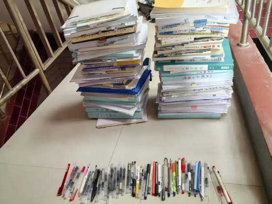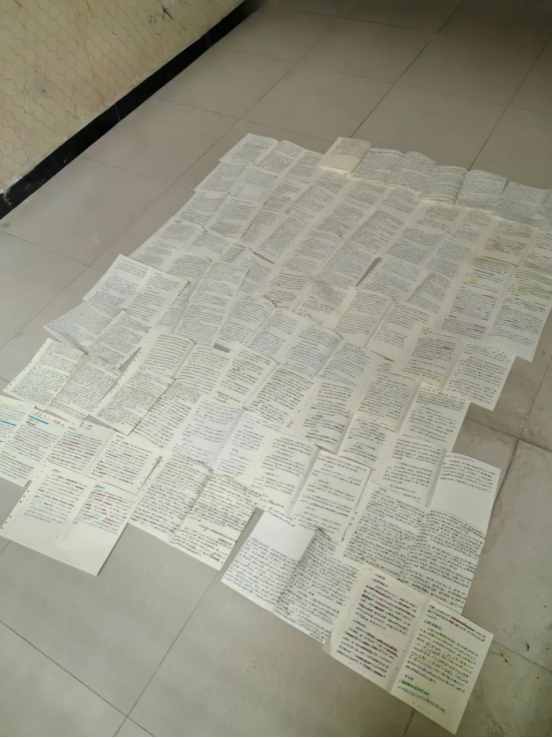 柴瑞雅备考时总结的复习资料和用完的笔芯