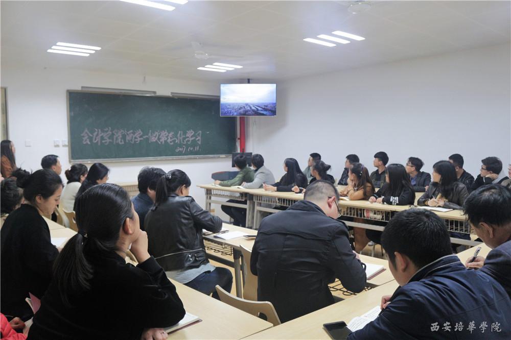 10月11日,为进一步加强基层党组织和党员队伍的建设,深入推进“两学一做”学习教育活动,我校党委书记胡俊生在博远楼2218教室为会计学院党总支就“两学一做”常态化学习教育讲了一堂专题党课,并观看《不忘初心,继...