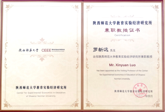 校党委书记罗新远教授受聘为陕西师范大学教育实验经济研究所兼职教授
