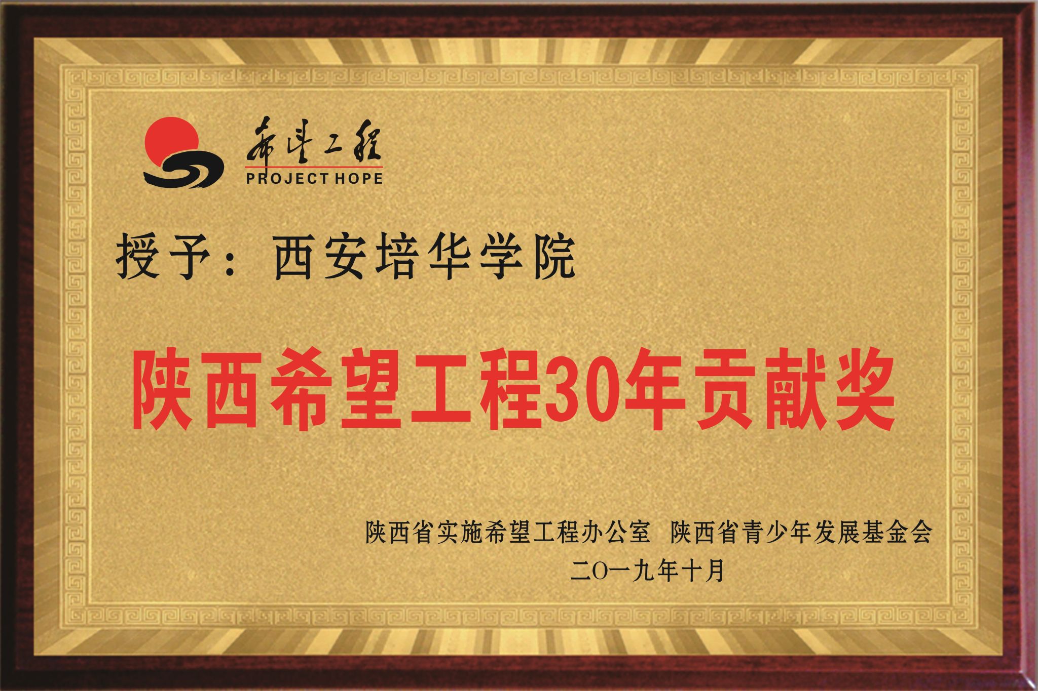 陕西希望工程30年贡献奖
